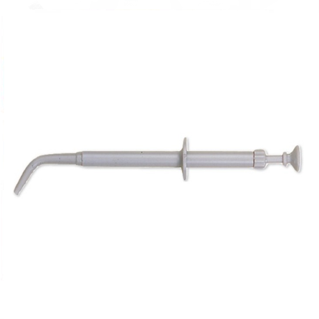 Amalgam or composite carrier, curved syringe. Autoclavable plastic syringe.